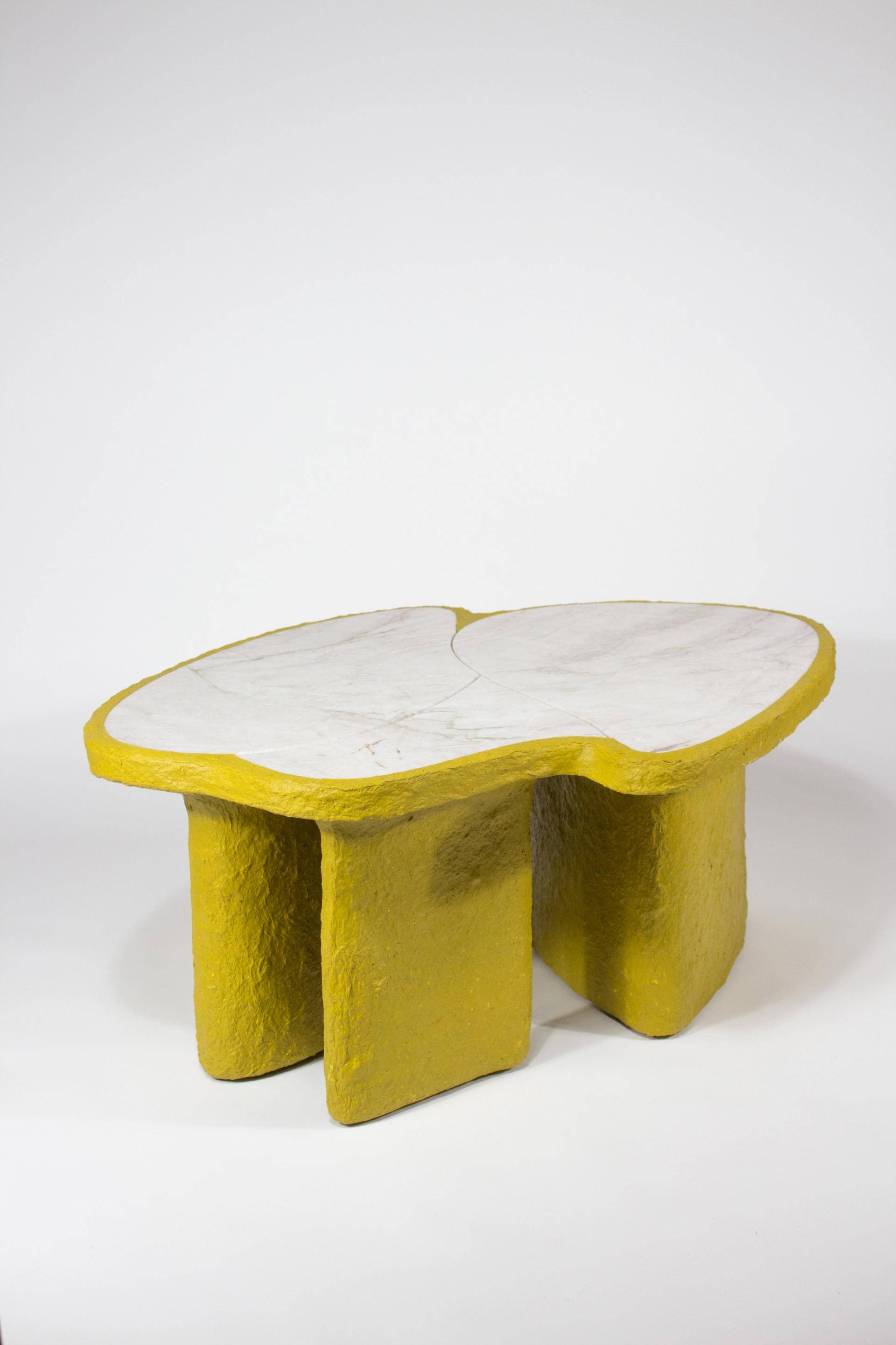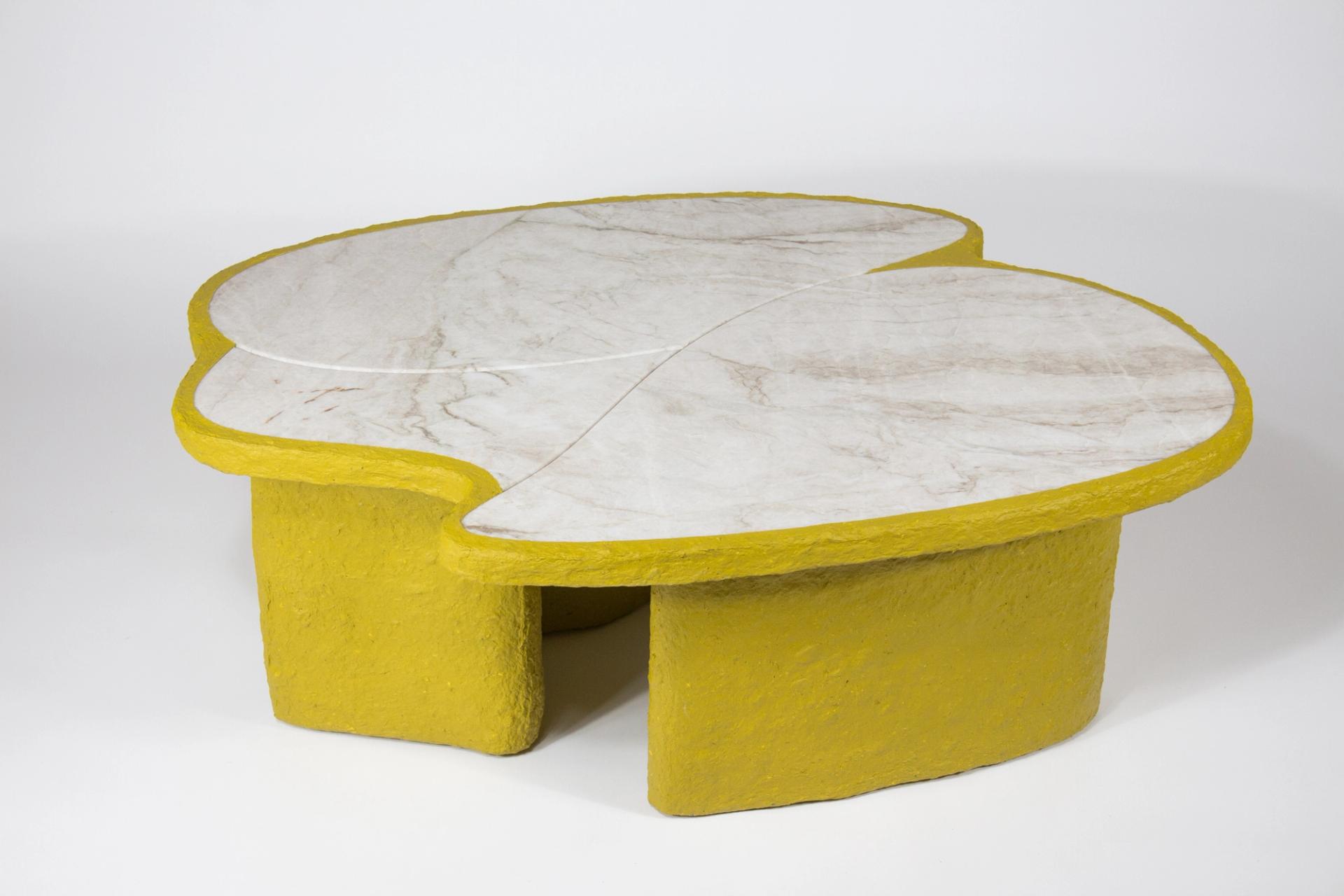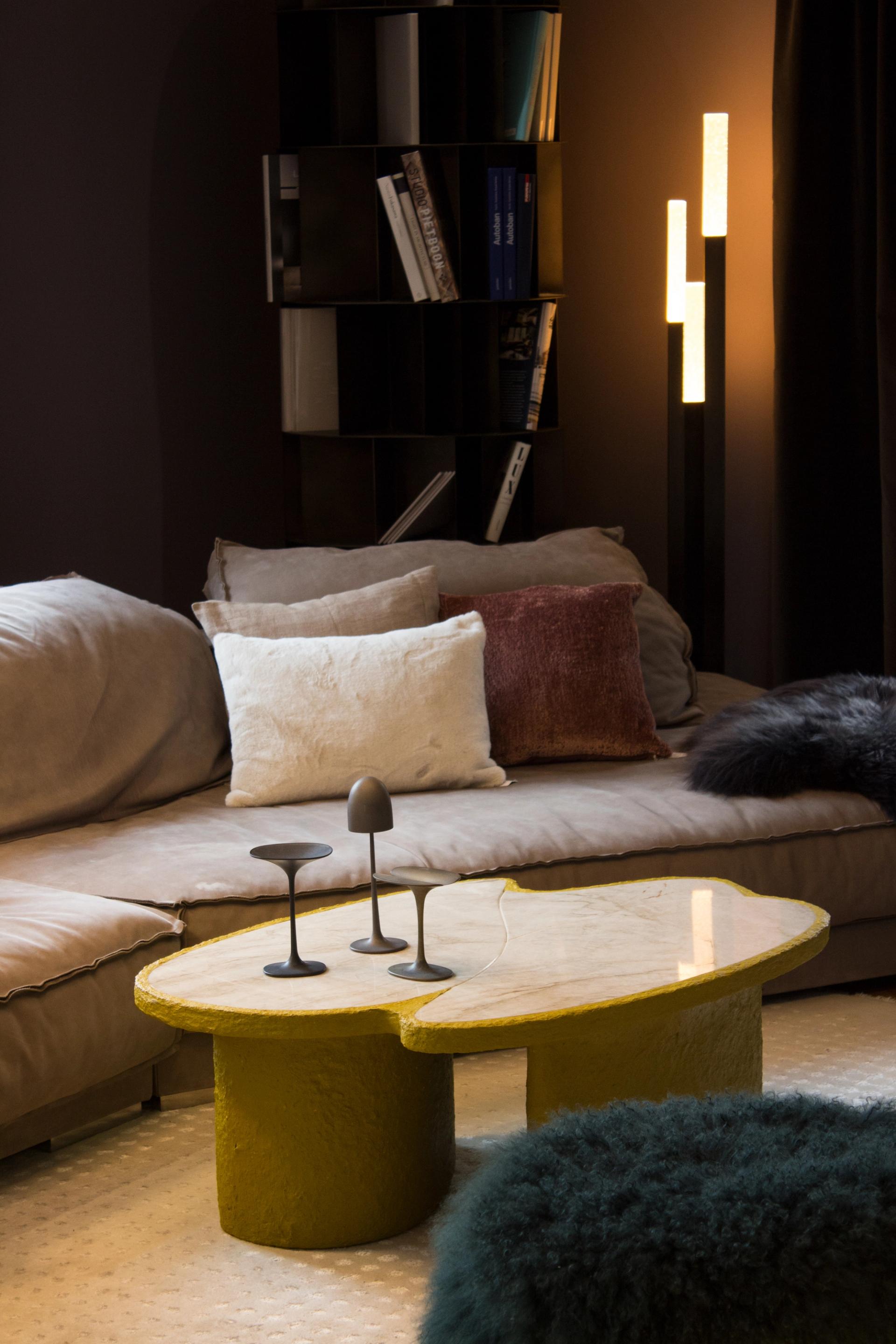 Cartapesta is the expression of the joy of experimenting and daring new combinations. Colorfulness and stone express these qualities, supported by the wild and bright texture of the cardboard mesh. One often has the impression that elegance must not be daring and must be very strict in its form and materiality. Our answer to this is that elegance must also have a certain cheekiness.